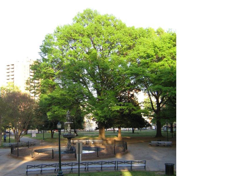 Comments: This beautiful willow Oak (Quercus phellos) lives just east of the historic Victorian fountain in Monroe Park, Richmond's oldest city park. Shading the benches that lie beneath in the hot, humid Summer months in Richmond, this tree is a stately sight in an urban setting; a sylvan respite smack in the middle of the VCU Monroe Park campus.