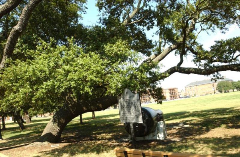 Comments: This tree is located inside the moat on Fort Monroe, VA. Directly next to the oak lies a historic civil war era cannon. The tree sharply sprawls outward in one general direction almost like it was trying to provide shade to the soldiers firing the cannon. The cannon was used during the civil war to defend the Hampton Roads harbor from intruders. This tree has literally been shaped by Hampton Roads.