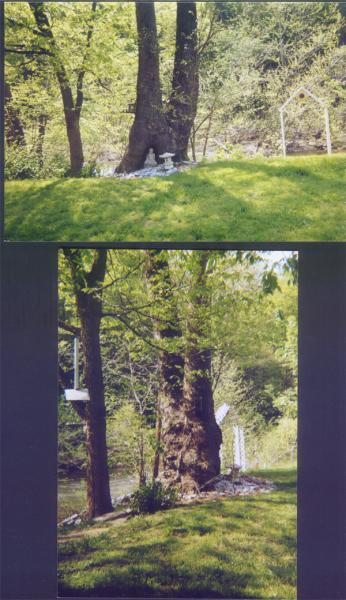 Comments: The "Grotto" tree as we call it, a Sycamore, has a base circumference of 20'4". In the center of the smallest part of the base there is a 28" high x 21" wide natural opening probably formed early in the tree's existence. As you can see by my photos we are able to enshrine a 20" statue of Buddha. At approximately 4' upwards the tree branches into two separate trees each with a base circumference of 8-9'. It is difficult to know how tall a tree it is, but I think it is safe to say at least 125' tall and, at least 200 yrs old. (Note: this is the 5th largest sycamore on record for Virginia in 2006.)