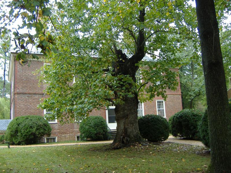 Comments: This is a legendary tree that was nearly destroyed by Hurricane Isabel. It grows in front of Berkeley Plantation, an historic site that spans three periods in Virginia's history- European settlement, national independence and the Civil War. It is the site of the nation's first Thanksgiving in 1609; the home of Benjamin Harrison, a signer of the Declaration of Independence; and U.S. President William Henry Harrison. In 1862, Berkeley Plantation was headquarters and supply base for 140,000 Union troops under the command of Gen. George McClellan. President Lincoln reviewed troops here. The tree pictured here is the same one pictured in a Matthew Brady photograph.