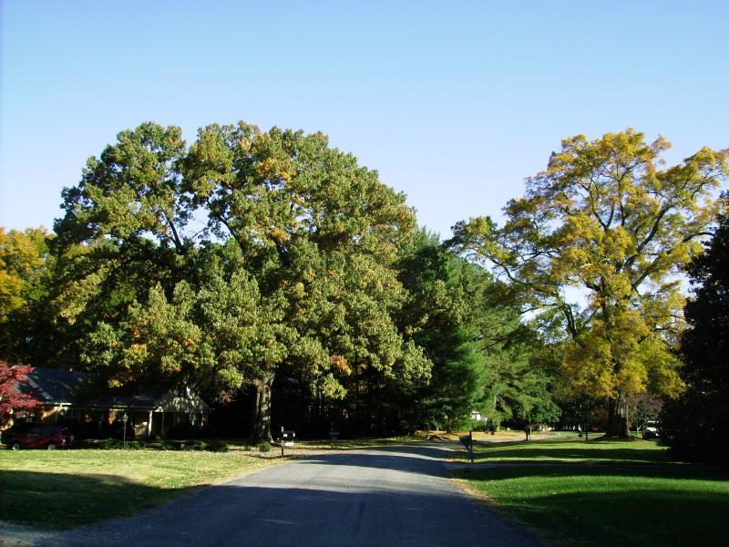 Comments: The two most magnificant trees in the tree-rich Willow Oaks neighborhood of south Richmond happen to be across the street from each other. Although shown here in mid-fall, they are truly a sight when both in full bloom. One is a willow oak, the other is a southern red oak.