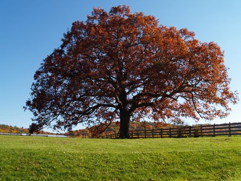 Comments: The tree I am nominating is an oak. It is as wide as it is tall. It is knotty and beautiful. I have attached a photo that my friend Lora Howard took of the tree for me. I have admired this tree for years and years and I asked my friend Lora, who is a talented photographer, to get a shot of this tree in each of the 4 seasons and I am going to put the photos in mats & frames and adorn my walls at home with photos of this favorite tree of mine. You can tell the beauty of the tree in the attached photo but I feel like the best time of year to see the tree is now, when most of the leaves are gone and the knotty branches can be seen. I am sure this tree has a story- I dont know what it is but something about this tree speaks to me.