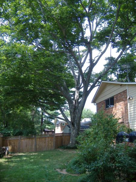 Comments: Our tree is the "Round Tree" for which our subdivision was named in 1960, Roundtree. Other surrounding items were named for this tree: Roundtree Road, Roundtree Estates, and adjoining Roundtree Park. The hill on which the tree stands was once a farmstead. The arborist whom we engaged to care for it when we purchased our home in 1995 said it is approximately 130 years in age, which makes it young according to its species lifespan. We also have been told that it is in the top five largest of its kind in Virginia. There is talk that this tree was called the 'hanging tree.' Gallows Road is just down Annandale Road, which was named for the route the historic county courthouse and jail, relocated long ago.
