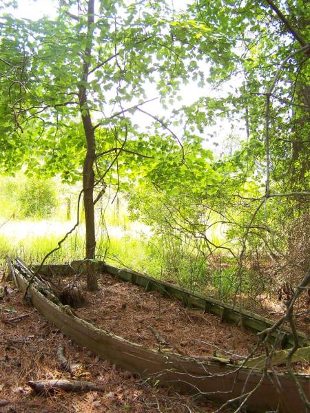 Comments: This is a tree at False Cape State Park in Virginia Beach. The park includes the grounds of abandoned hunt club and apparently someone abandonded their rowboat as well. The tree grew right up the boat and note how the limbs have wrapped themselves around the barbed wire! Note: In the 1800s, False Cape gained a reputation as a ship's graveyard. The area got its name because its land mass resembled Cape Henry, luring boats into shallow waters. Survivors of such a shipwreck established one of the area's first communities, Wash Woods. The villages church and other structures were built using cypress wood that washed ashore from a wreck. Remains of the settlement still exist today.